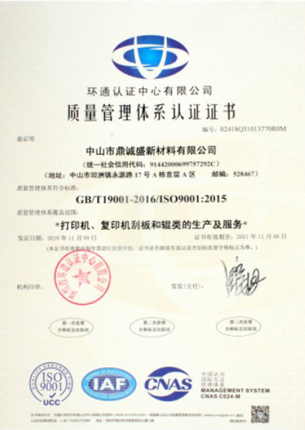 质量管理体系认证证书